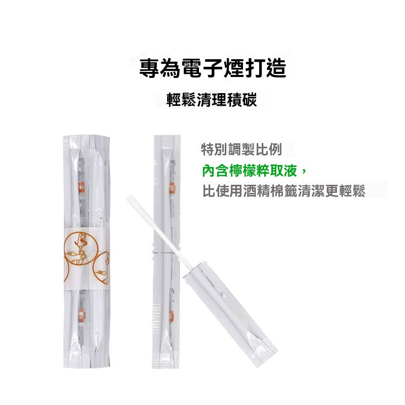 • 高效清潔液: 套裝中包含浸漬了專業清潔液的獨立包裝棉簽。這些清潔液通常採用檸檬水或溫和酒精基底配方,能有效溶解並去除附著在陶瓷發熱片和加熱倉內壁的頑固焦油與殘渣。