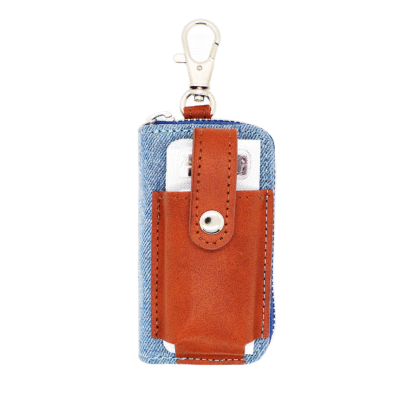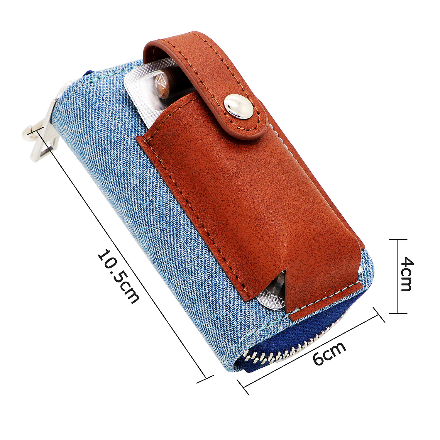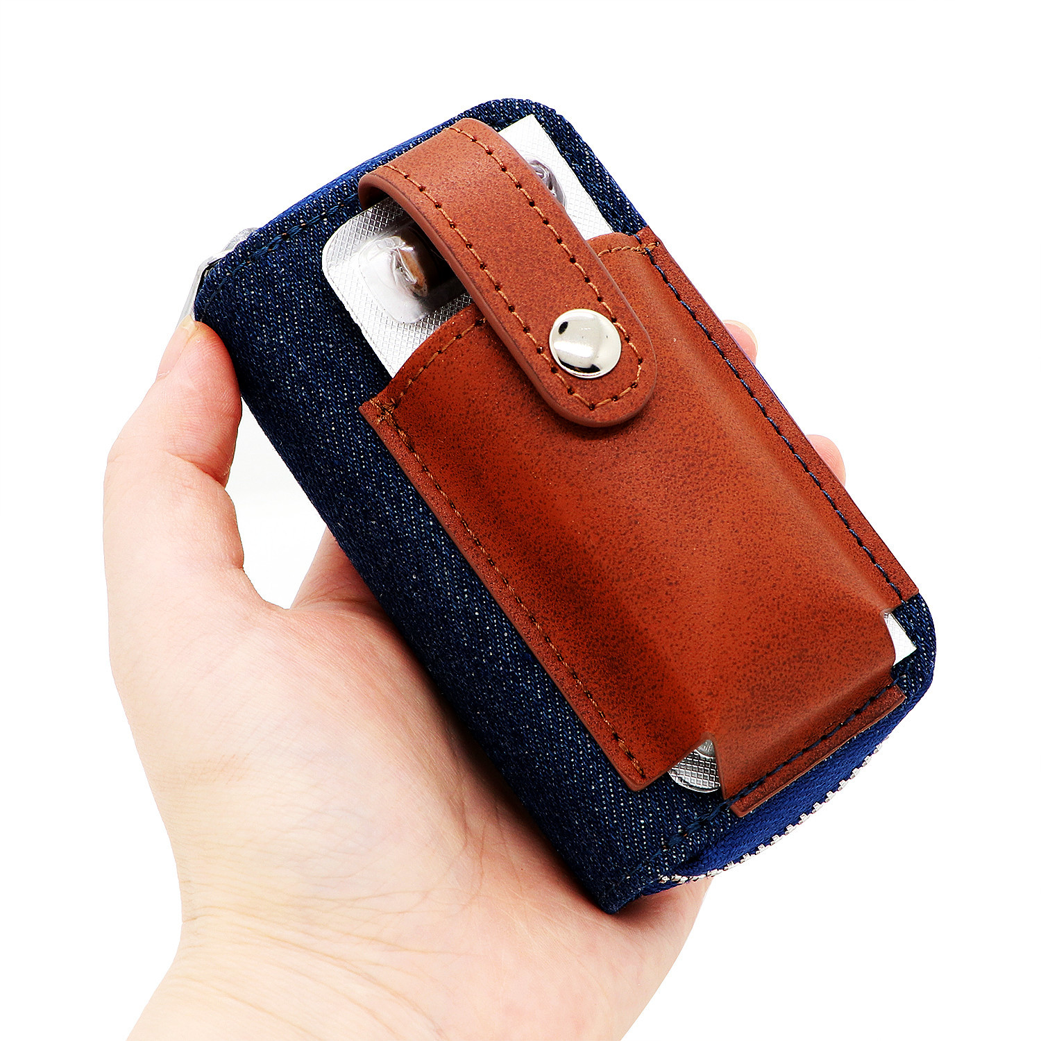 時尚撞色: 外部皮革為經典棕色系,搭配搶眼的海軍藍拉鍊/邊框,創造出時尚的雙色撞色效果,視覺層次豐富。